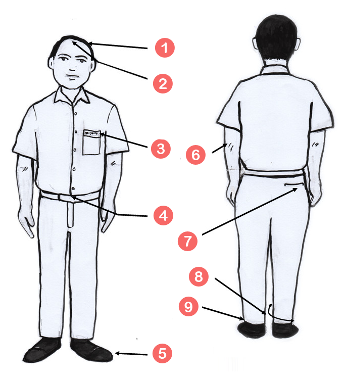 • The hair should be cut short and combed to the side. (Side part hair 1/2 inch long)